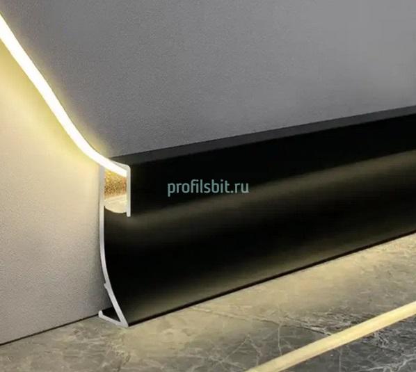 Алюминиевый плинтус напольный 71 мм с LED подсветкой и экраном ПО-193 черный матовый 2,7 м