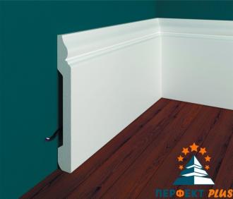 Напольный плинтус Перфект Плюс из белого ударопрочного полимера — это прочный и надежный элемент для отделки стыков между стенами и полом.