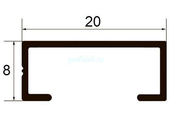 Алюминиевый П-профиль 8х20 мм Б-4 серебро люкс 3 м.