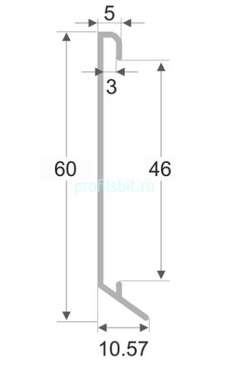 Алюминиевый плинтус 60 мм для ковролина ПО-194 серебро матовое 2,7 м.