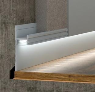 Этот плинтус обеспечивает долгий срок службы благодаря алюминиевой конструкции и добавляет современный акцент в любом интерьере.