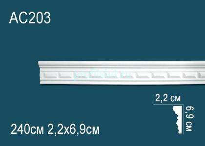 Молдинг с орнаментом Перфект AC203 69х22 мм 2,4 м белый полиуретан.