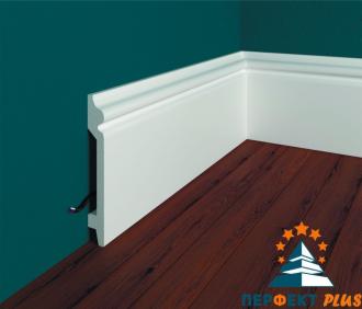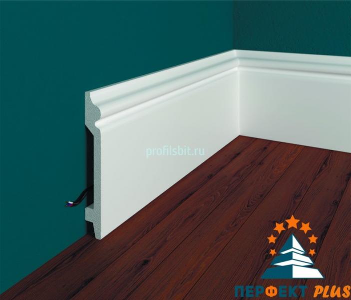 Напольный плинтус Перфект Плюс из белого ударопрочного полимера — это прочный и надежный элемент для отделки стыков между стенами и полом.