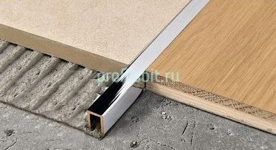 Профиль П-образной формы применяется для отделки и декорирования торцов, кромок и внешних углов при укладке керамической плитки, камня и других материалов.