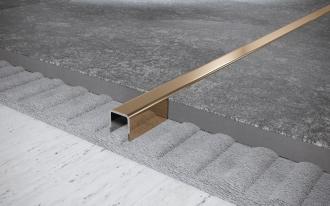 Компактный П-профиль с полированным золотым покрытием, идеален для отделки и защиты узких участков плитки.