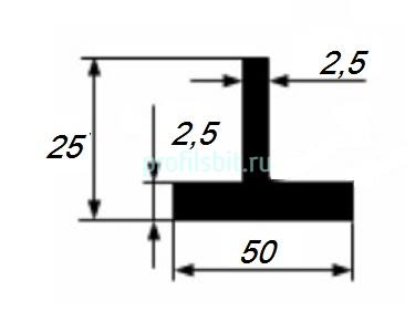 Тавр алюминиевый 50х25х2,5 мм 3 м